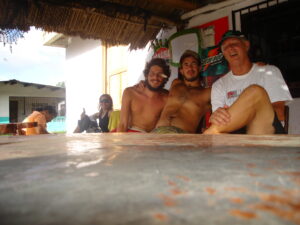En la charla y almuerzo nos hacia preguntas, y nos analizaba, un rato mas y nos fuimos a encontranos con la familia garífuna, mucho no la veíamos, pues buscar una embarcación era un trabajo.